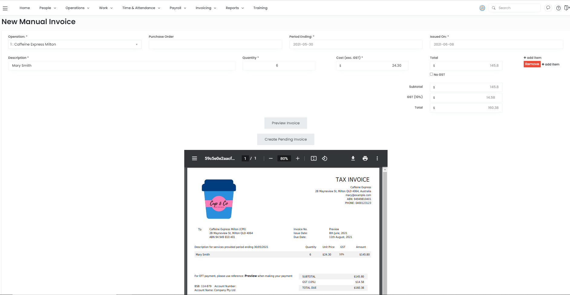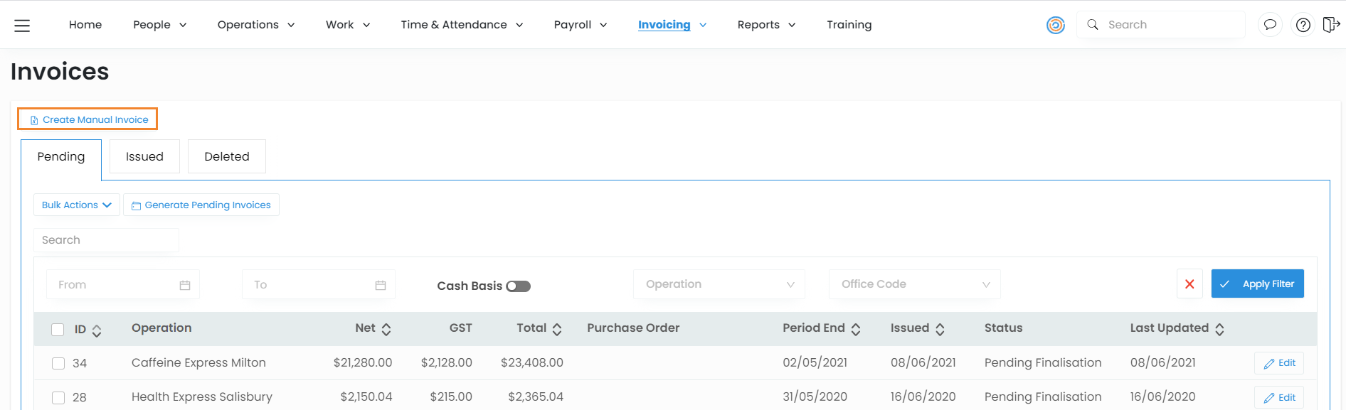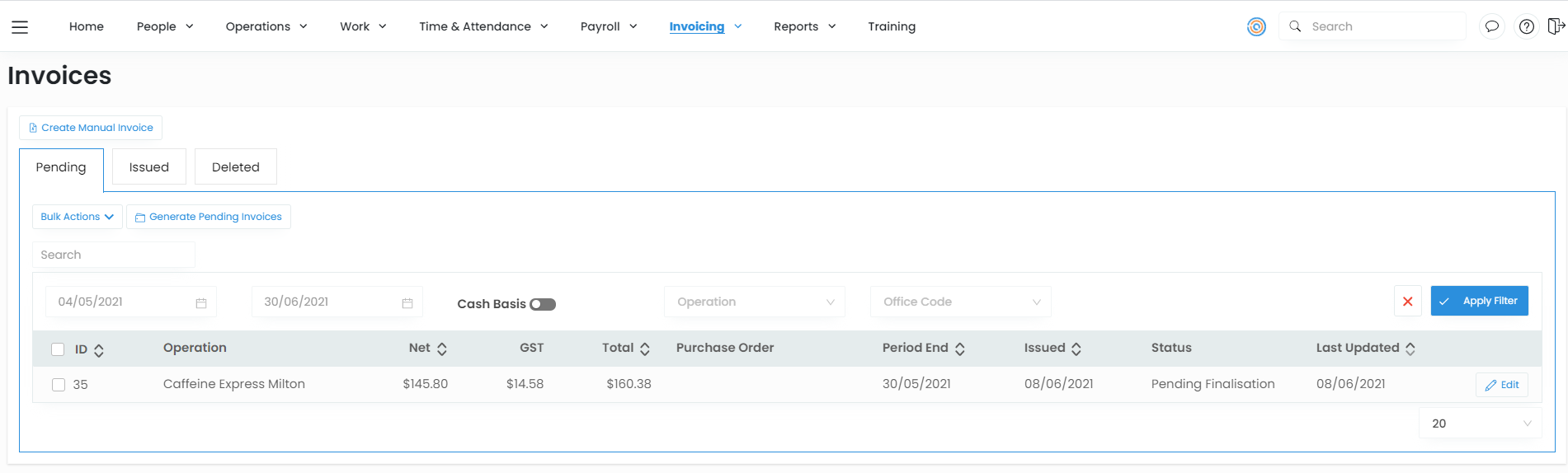 - This invoice will now appear in Pending invoices.