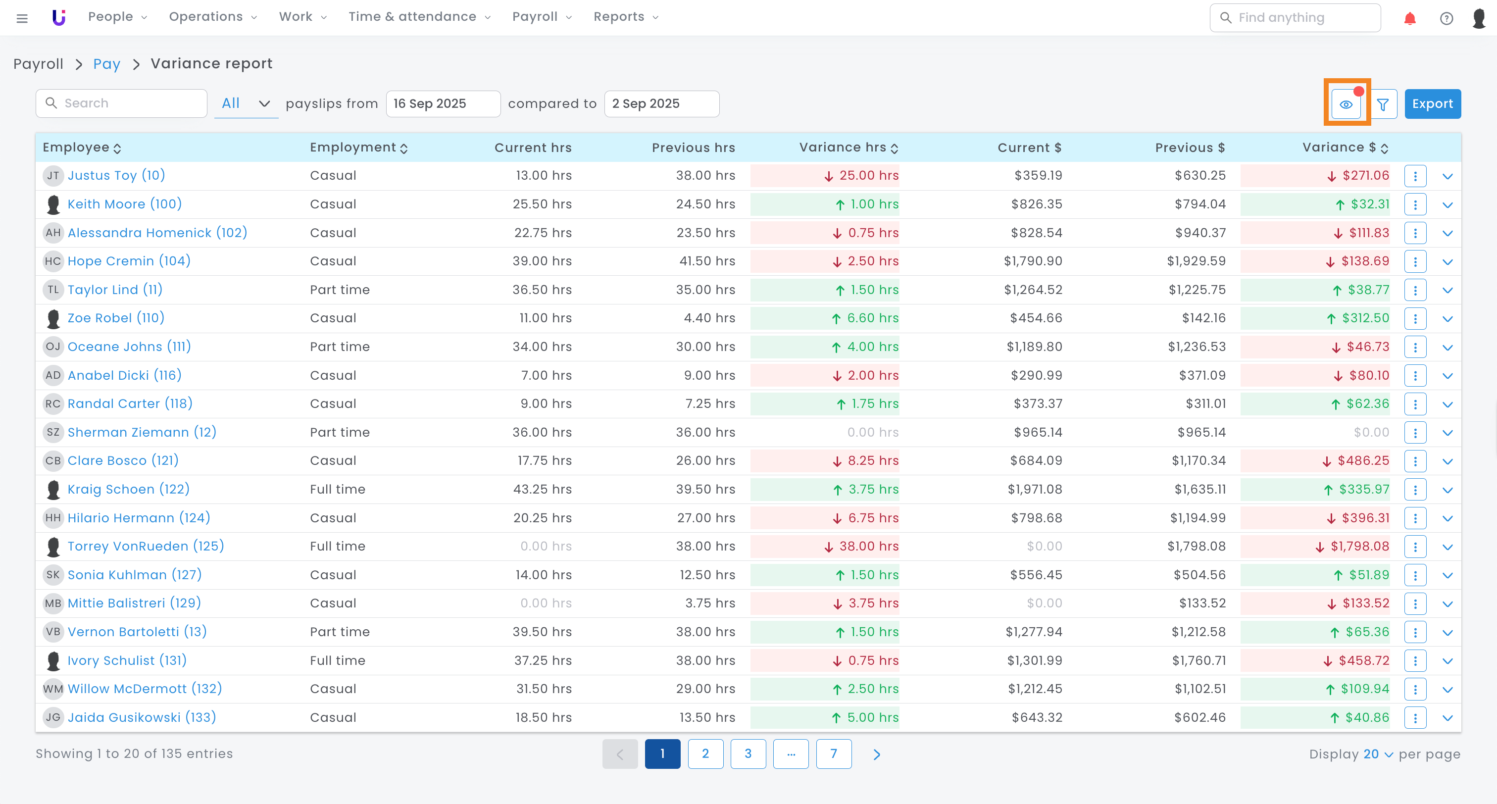 - By default, your report shows you a comparison of your draft payslips for your chosen period, compared to those from the pay period before the date you have selected.