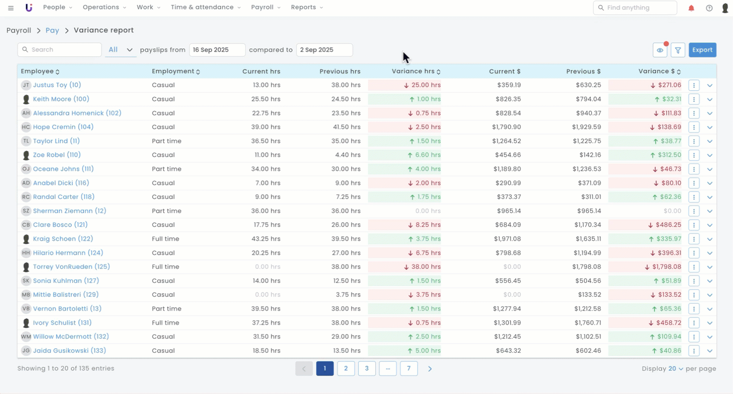 Have you ever run your payroll, only to realise that you have missed someone or forgotten something after paying your employees? With the Variance Report, you can easily compare your current draft or generated payslips to past pay periods to capture any changes between them.