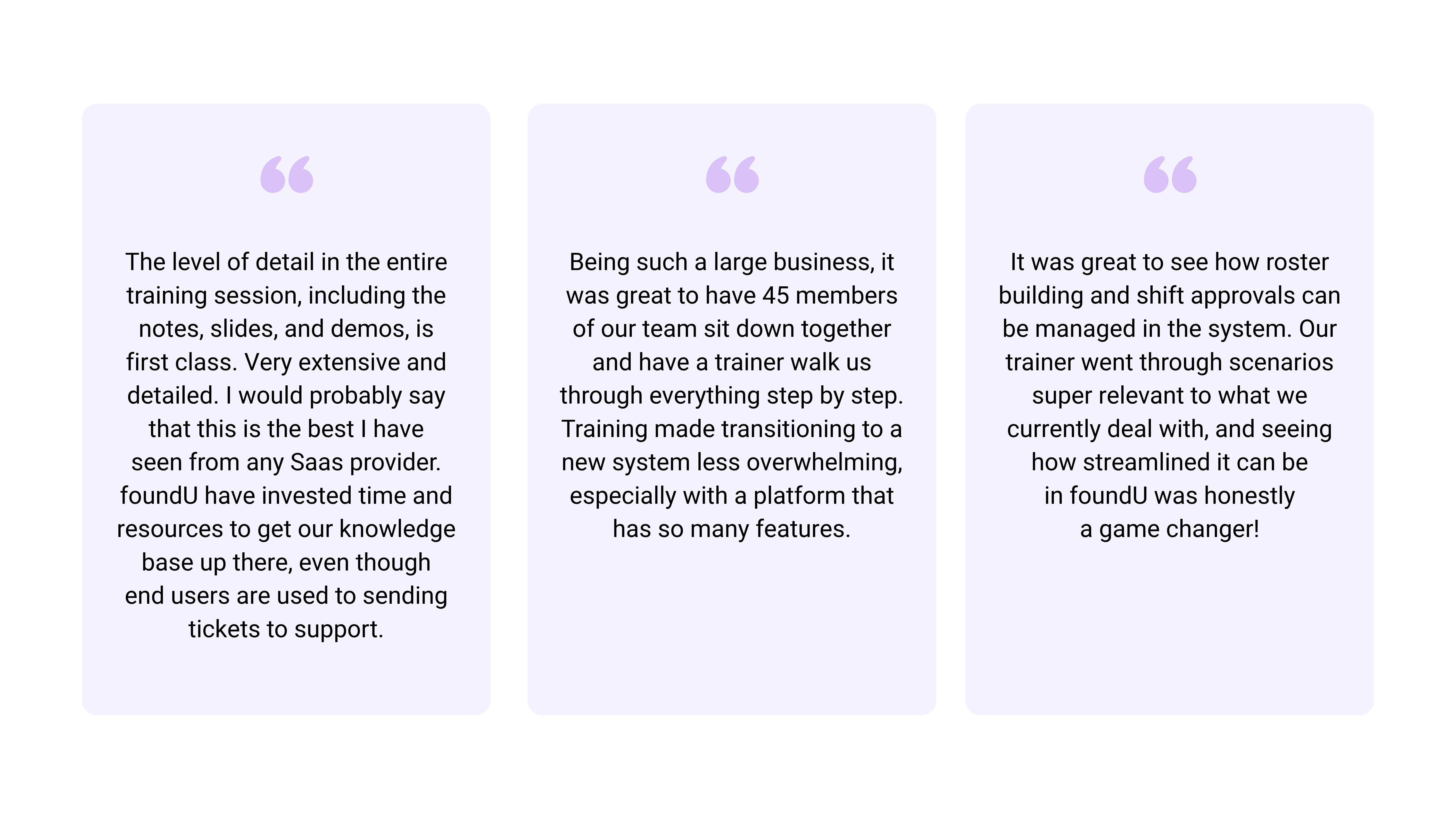 - Enjoy the confidence that your team will receive expert training from foundU professionals!