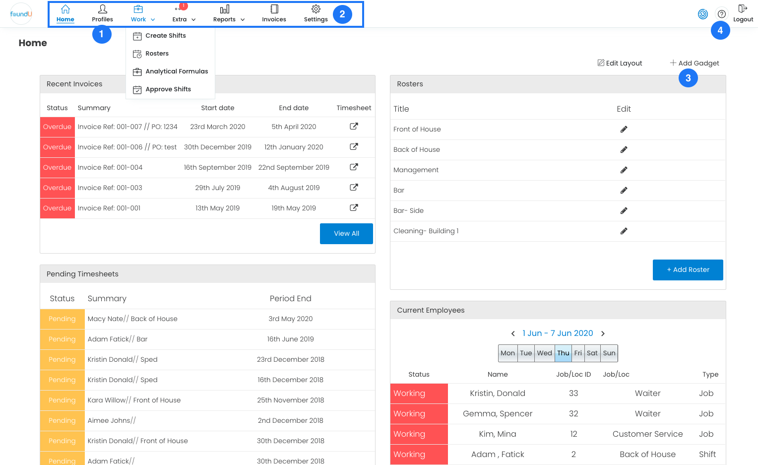 - Add gadgets for quick access to invoices, rosters, people working and more