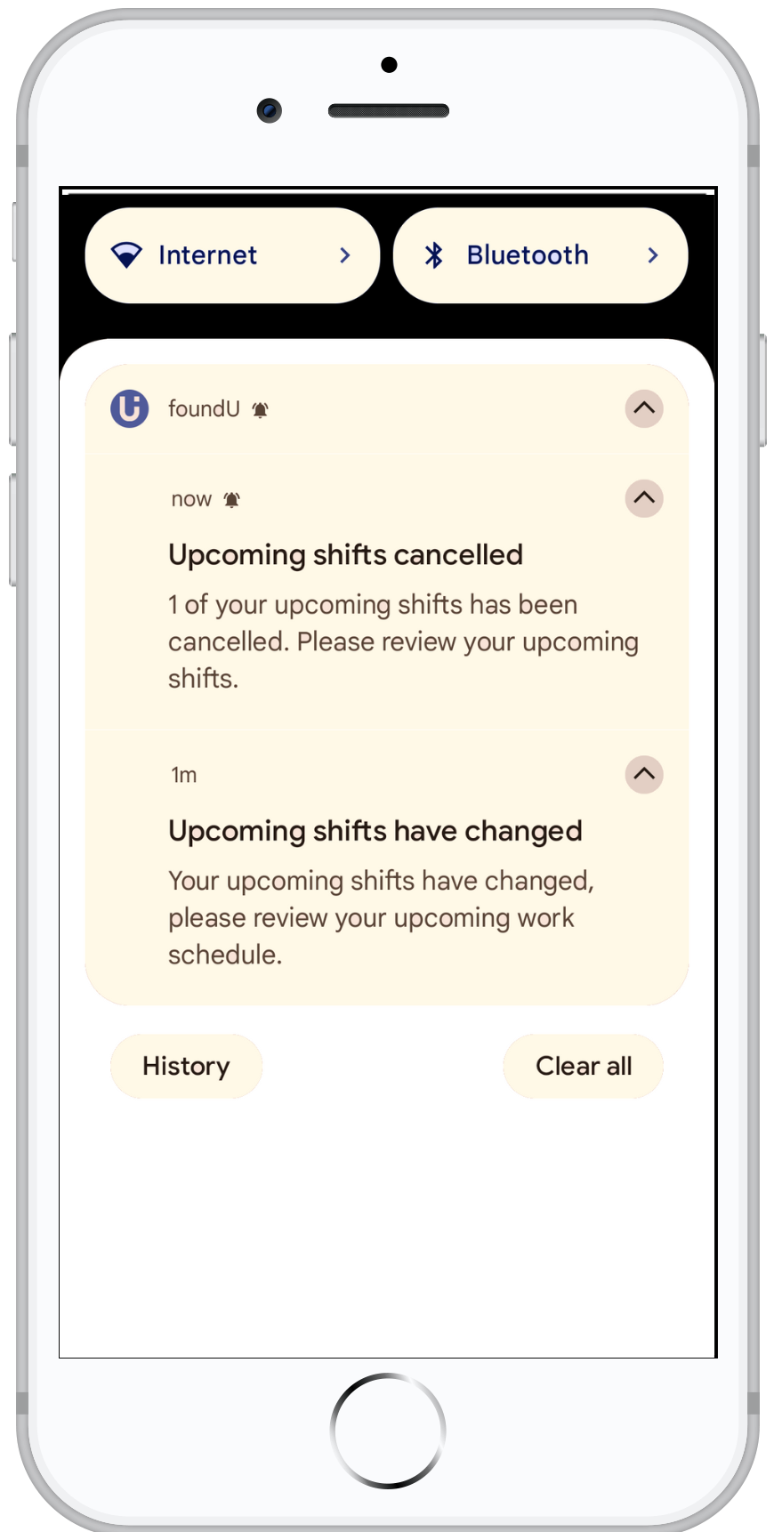 Push notifications are an efficient and cost-effective way to communicate shift information to employees. The foundU Employee app generates these alerts even when it is not in use, ensuring that employees receive immediate visual reminders about shift updates. This feature lets them stay informed without opening their app or checking their email.