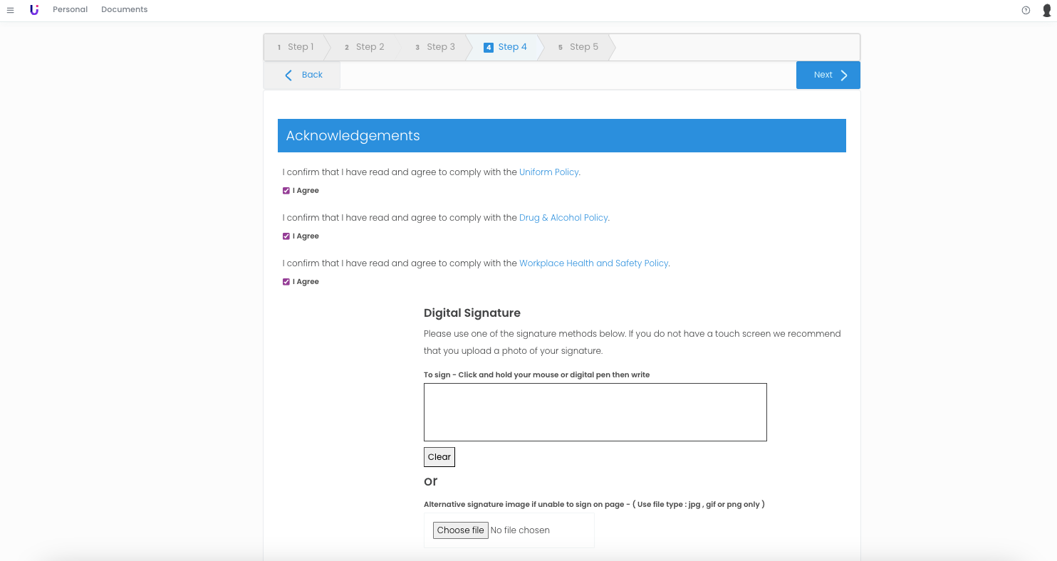One of foundU's most valuable HR features is the Document Library. This feature allows you to create and store personalised document templates, which can be issued to employees for signing and acknowledgement, then stored in their profiles.